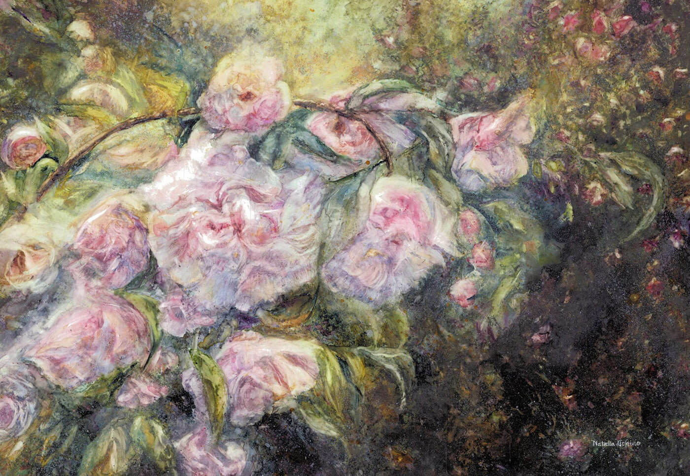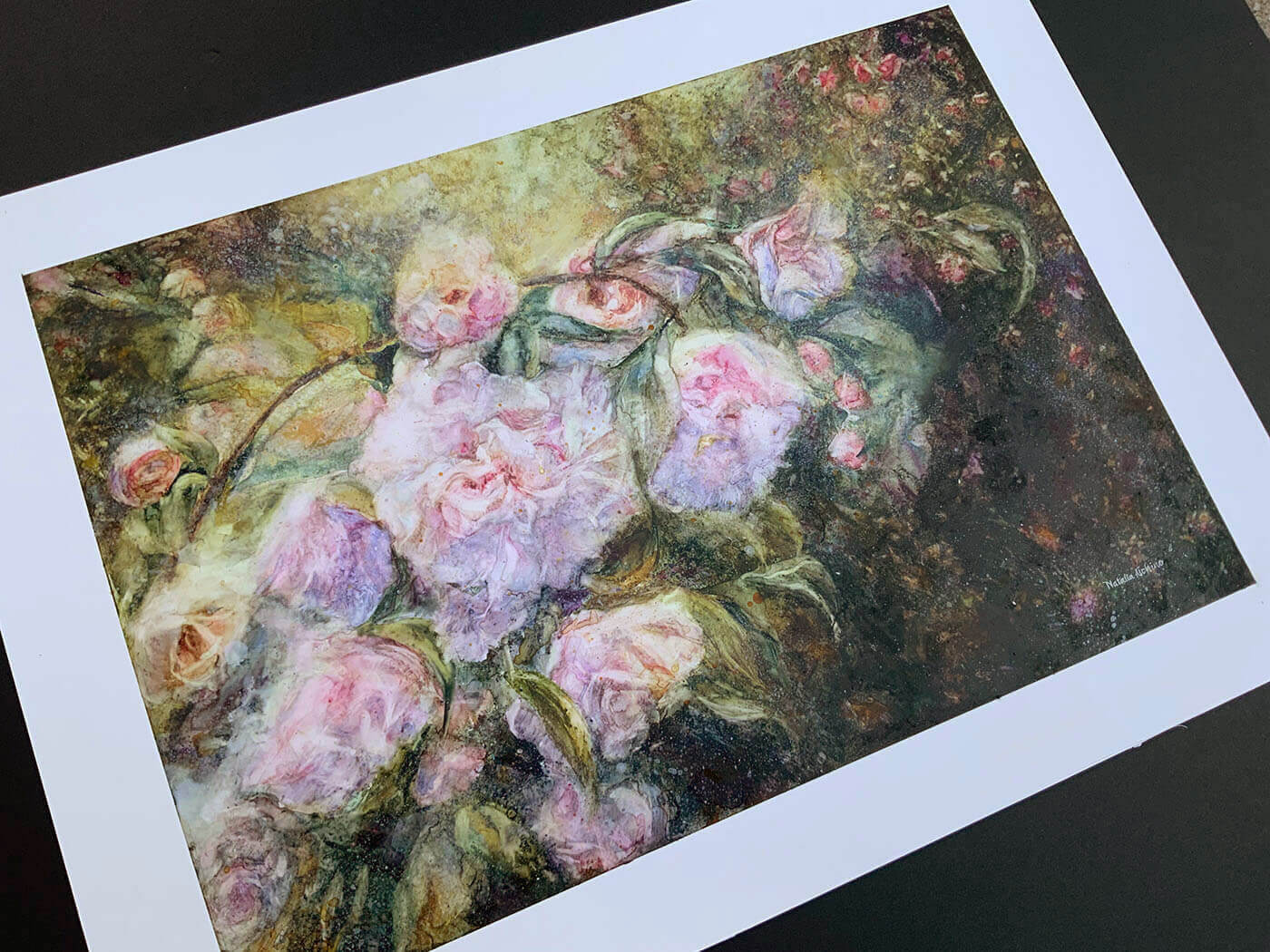Set within Araluen Botanic Park, the work leans into a softness where camellias seem to emerge from shadow and reach gently into the light. Forms are suggested rather than defined, allowing the flowers to feel as though they are slowly unfolding, held in a quiet moment between darkness and light. There’s a sense of depth that draws you in gradually, where the eye adjusts over time and the experience becomes one of settling into the scene rather than taking it in all at once.