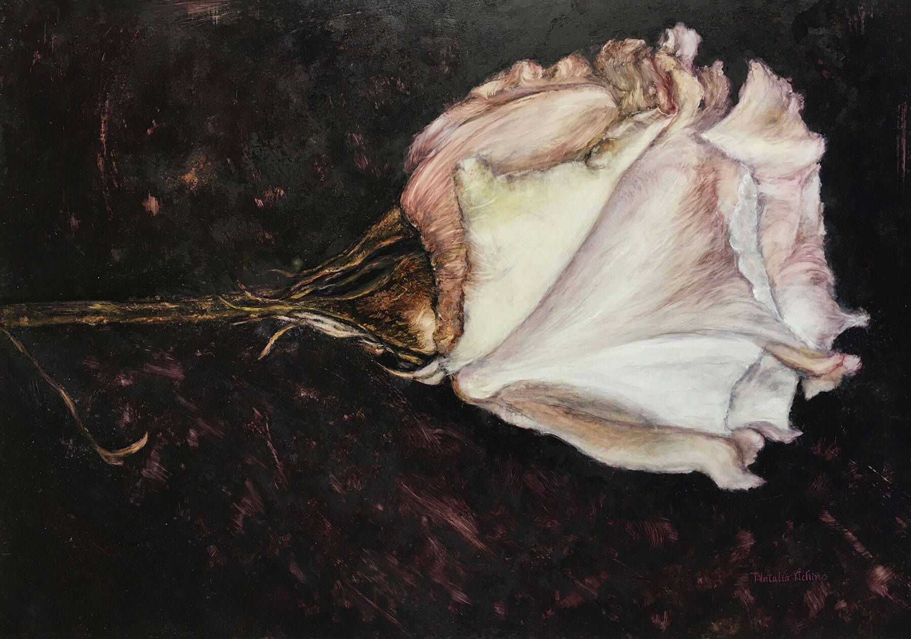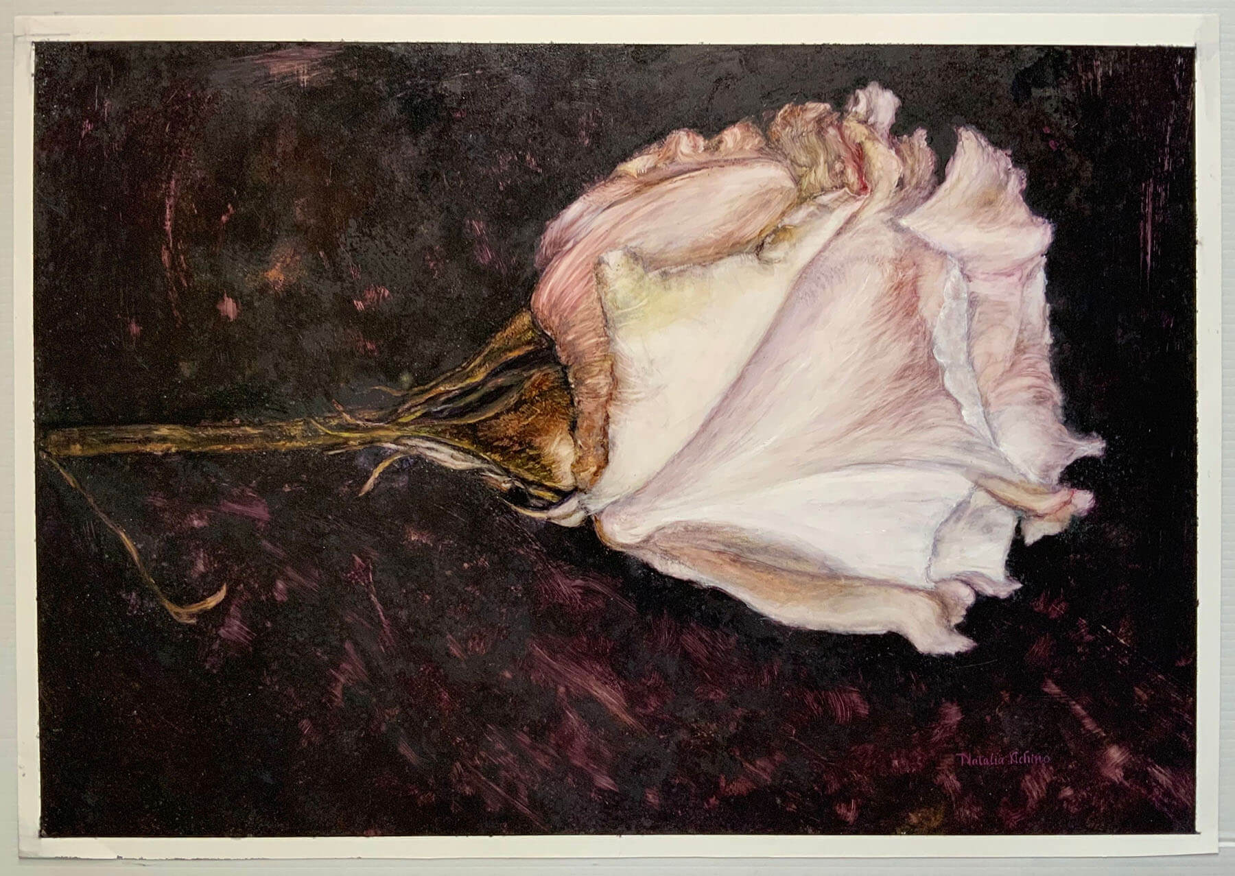 A single flower resting on the ground, noticed in a moment that might otherwise be passed by. There’s something in its placement that shifts the way it’s seen, no longer held upright or arranged, but encountered as it is, carrying a quiet sense of dignity even in its fallen state. The work lingers on that small act of noticing, where what might be overlooked becomes the focus, held for a moment longer than expected.