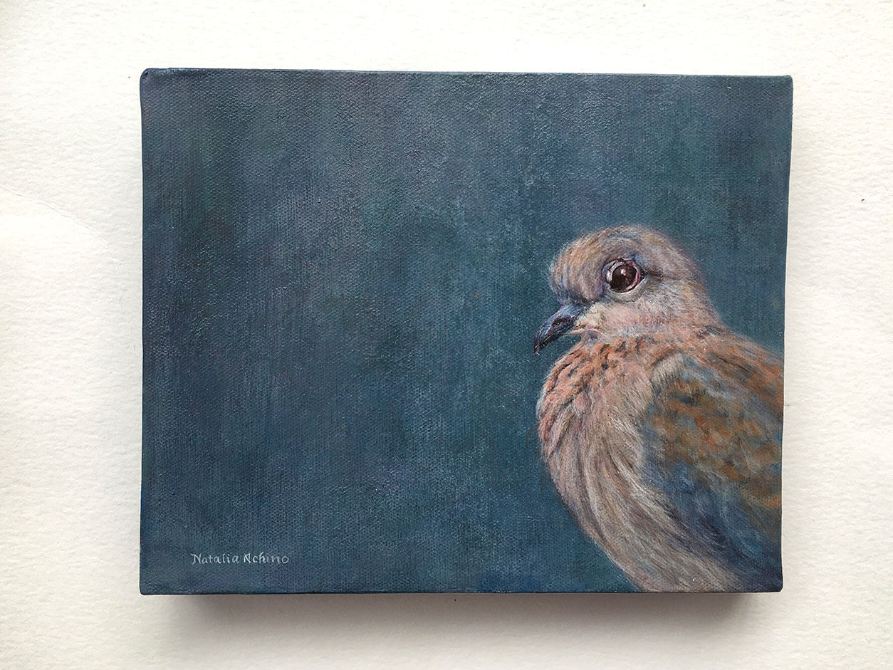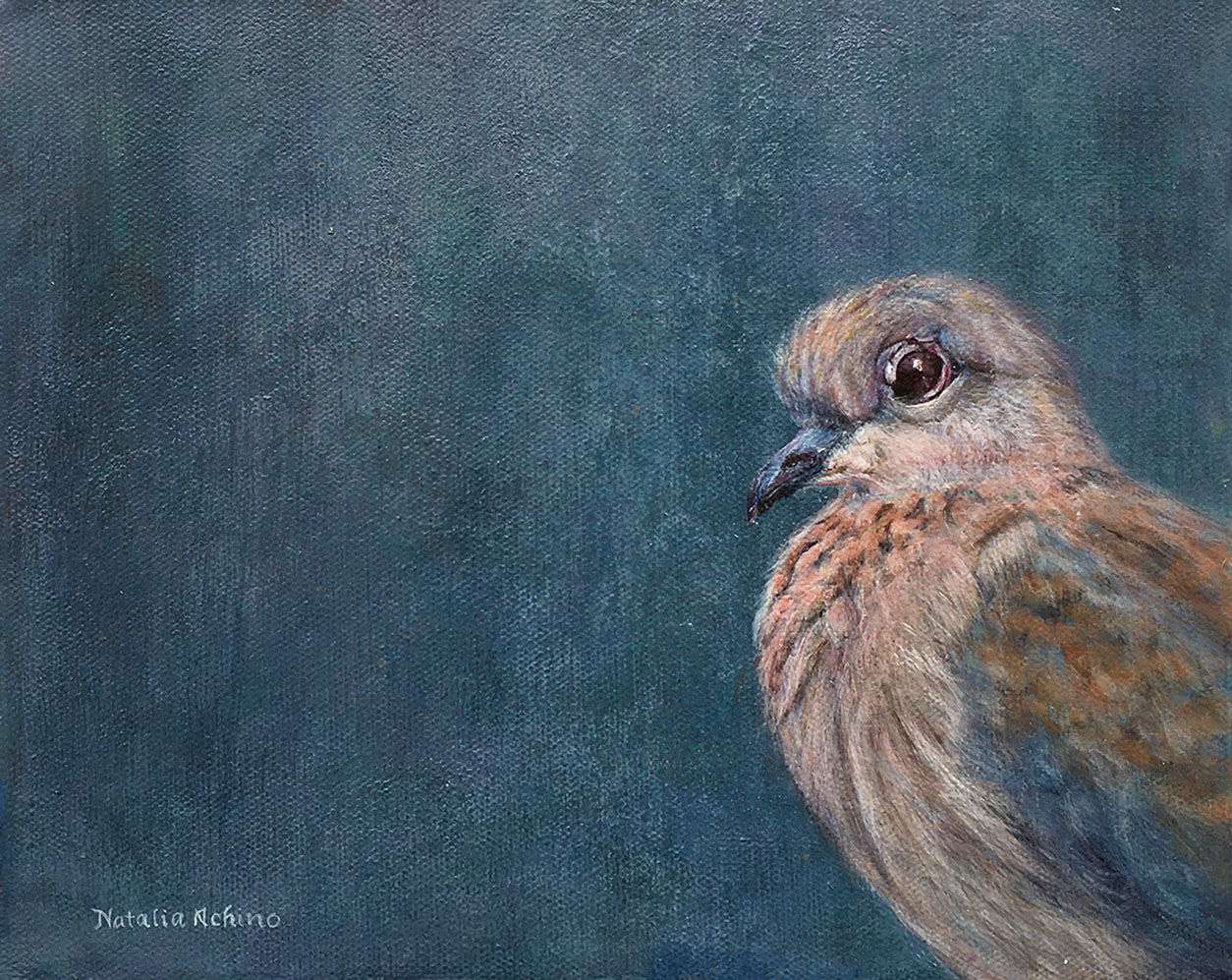 A single bird set against an open blue, seen as if through a window, where the act of looking becomes part of the work itself. There’s a subtle separation in that framing, a sense of being on one side while something else exists freely on the other. The piece plays with that contrast, where the simplicity of the image carries a quiet awareness of distance, perspective and the way we observe the world from where we stand.